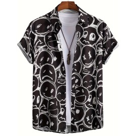 Coconut Tree Print Men's Casual Short Sleeve Hawaiian Shirt With Chest Pocket, Men's Shirt For Summer Vacation Resort, Tops For Men
