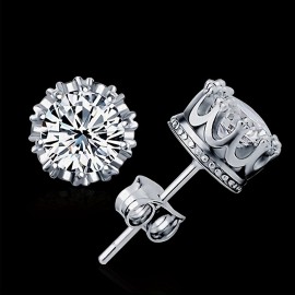 1pair Hip Hop 18K Golden Plated Round Cubic Zirconia Stud Earrings For Men