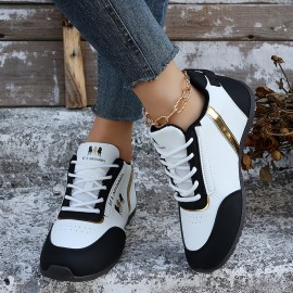 Women's Flat Sneakers, Casual Lace Up Outdoor Shoes, Women's Comfortable & Lightweight Low Top Shoes