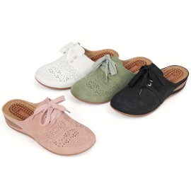 Women's Hollow Out Design Wedge Sandals, Casual Slip On Summer Shoes, Comfortable Arch Support Sandals