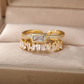 1 Ring + 1 Bangle Minimalist Style Jewelry Set 18k Gold Plated Chic Hollow Design Suitable For Men And Women Match Daily Outfits
