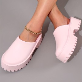 Women's Wedge Sandals, Slip On Open Toe Soft Sole Wear-resistant Slides, Faux Leather Platform Slides